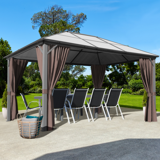 EN STOCK : pergola aluminium avec toit rigide. Grand choix, promos permanentes et livraison rapide partout en France. Cette pergola vous offre la possibilité de profiter d’une pièce en plus dans votre jardin, quasiment toute l’année.
